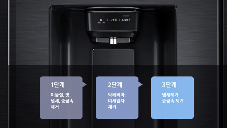 3단 필터로 정수된 깨끗한 물로 만든 얼음을 바로바로