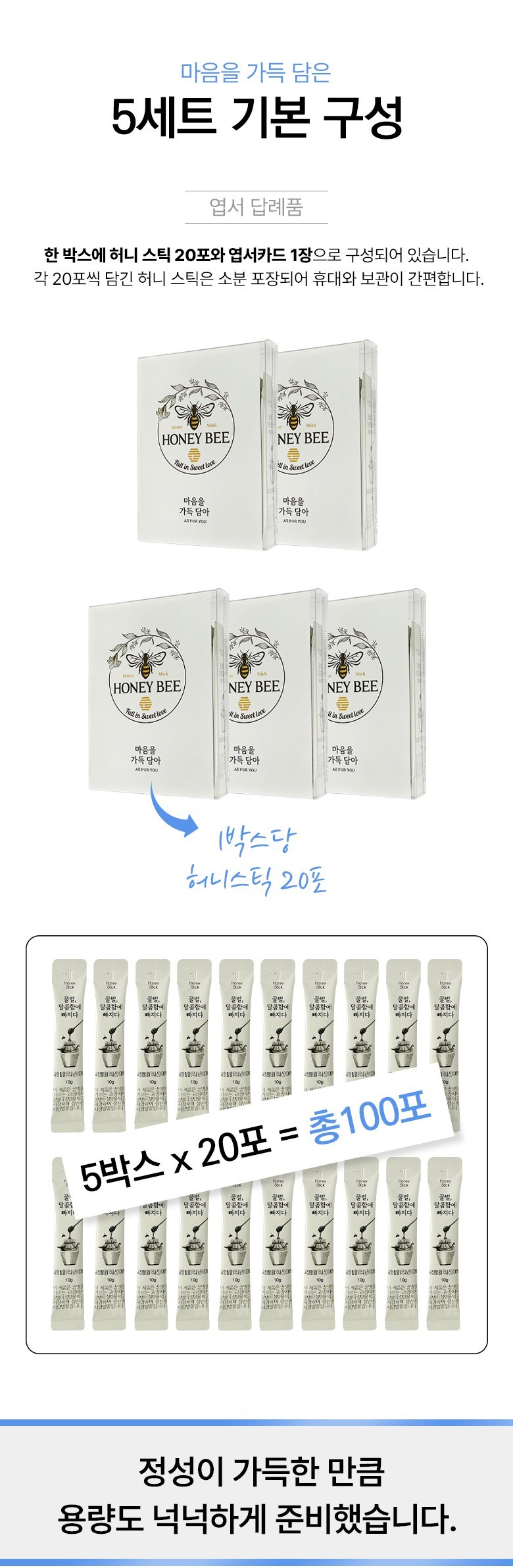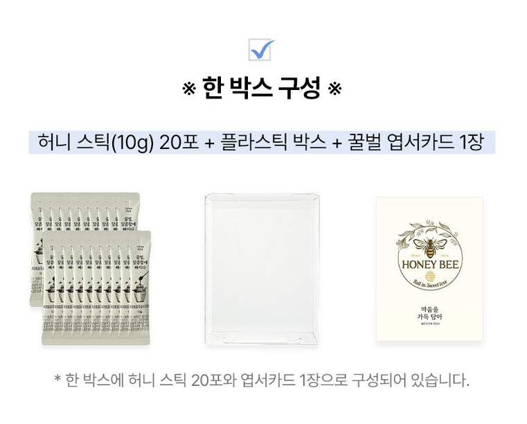 꿀스틱 20포와 엽서 한 장이 들어 있고