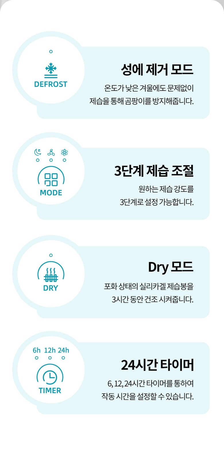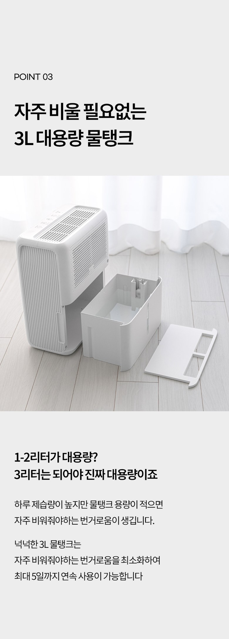 작은 사이즈지만 넓은 공간을 제습해주는