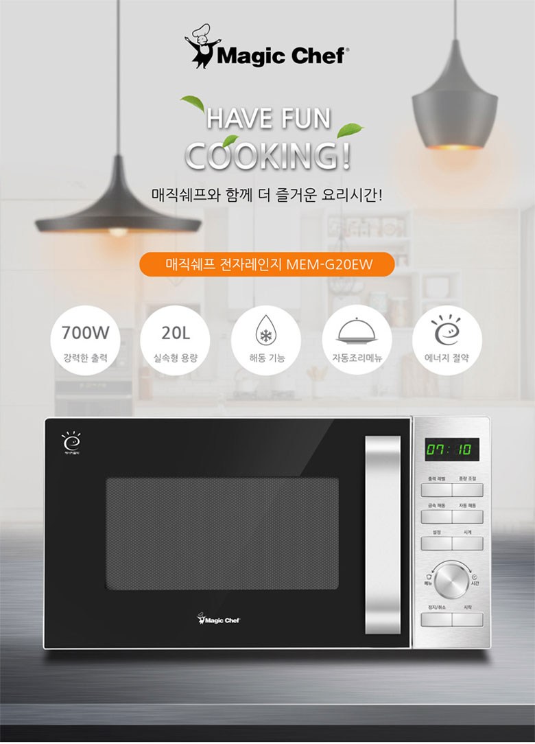 | 제품명 | 매직쉐프 전자레인지 다이얼 & 버튼식 20L (모델 MEM-G20EW) |