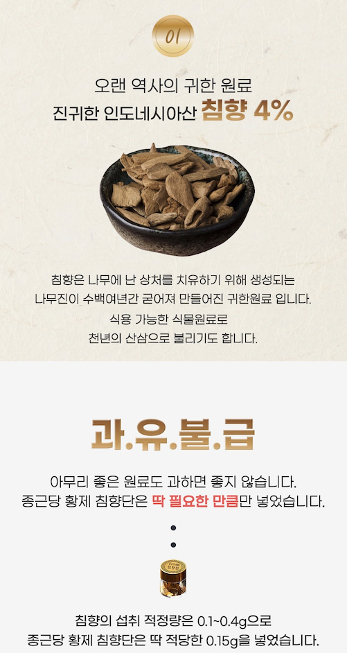 종근당 브랜드 + 침향환이라는 전통식 재료가 결합되어, 건강을 챙기고 싶은 분께 선물로 가치가 있음. - 포장과 구성