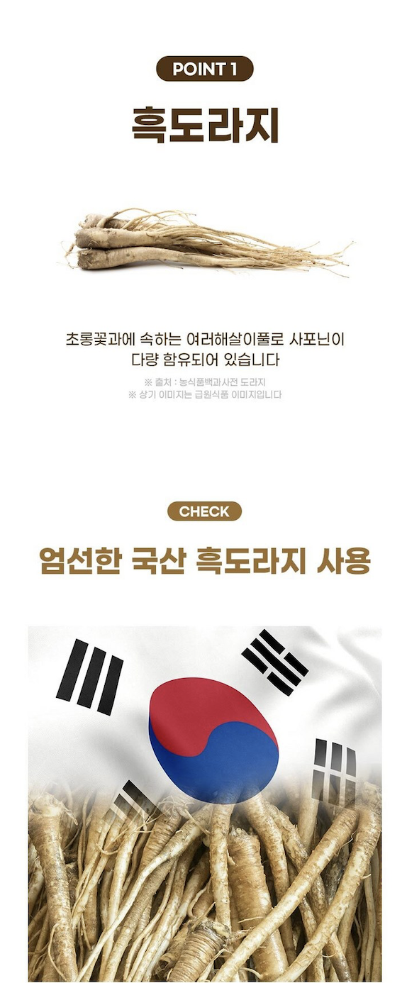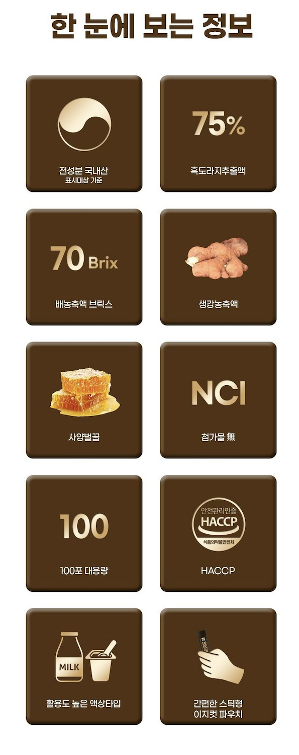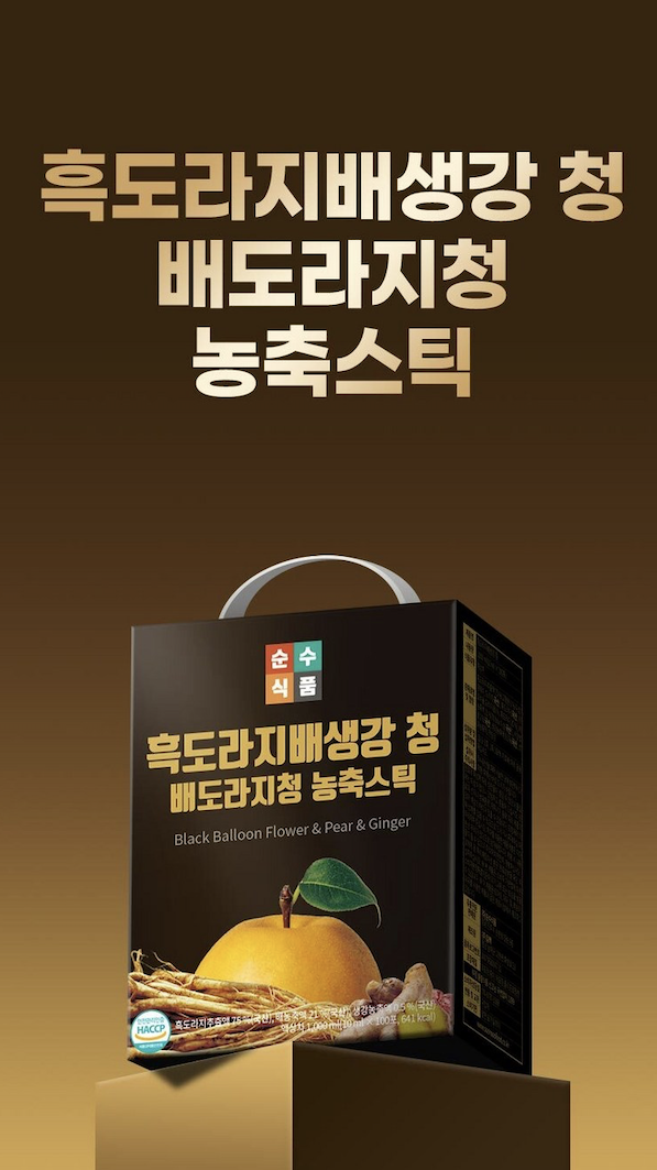 - 특징: 흑도라지, 배, 생강을 조합한 건강 청 스틱 형태 제품