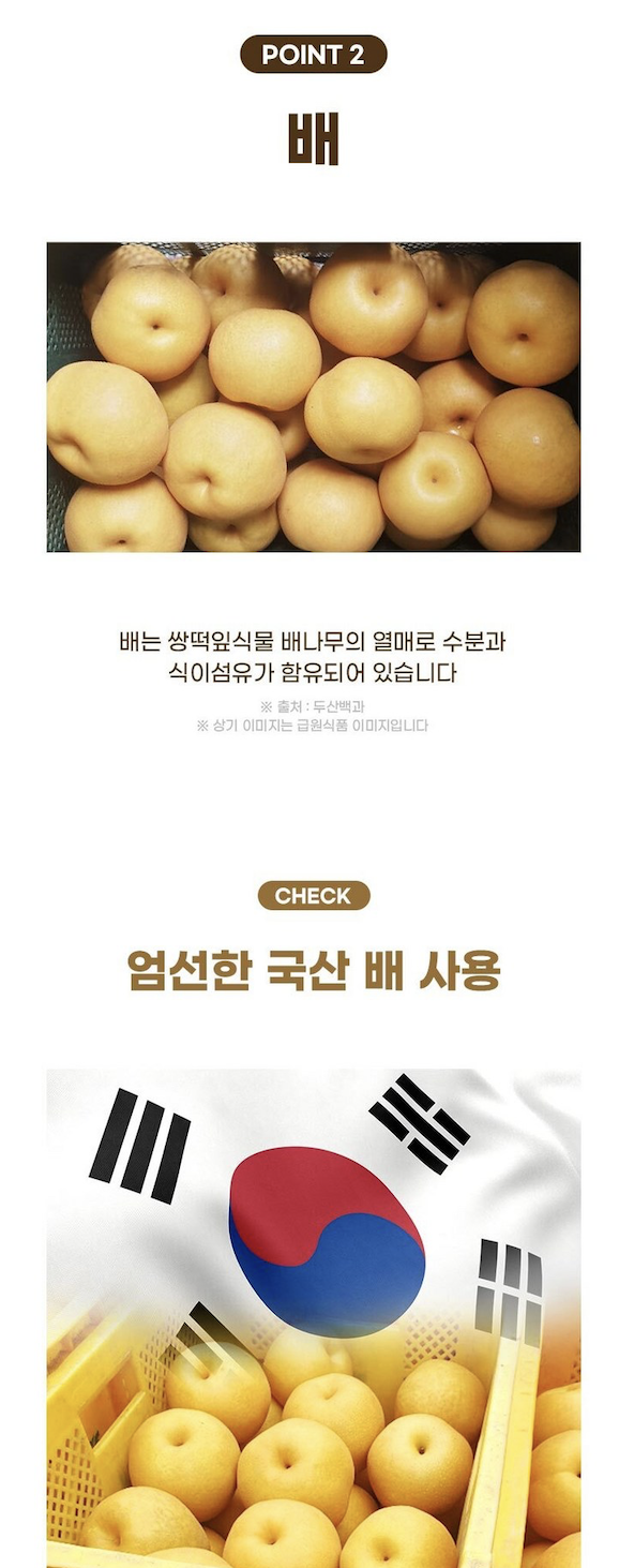 배·생강 등이 강한 재료라, 단맛이나 향이 강하게 느껴질 수 있음. - 가격 대비 가성비 고려 필요