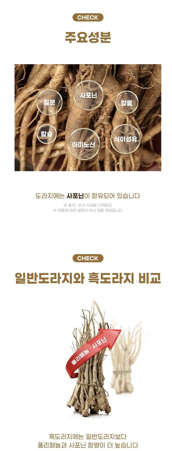 흑도라지, 배, 생강이 조합되어 면역력, 기침 완화, 식도 건강 등에 도움 기대 가능성이 있어. - 대량 수량